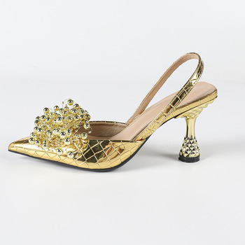Sandali da donna tacco alto a punta Outdoor con perle in fiore moda per feste nuziali estive